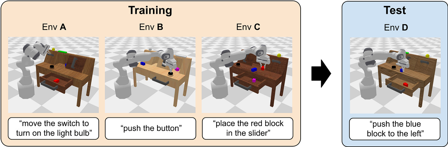 Obviously, comparing performance on a real-world task for robots is the benchmark. But running any kind of evaluation in the real world for robots is hard. In simulation, you don’t need to “reset the environment,” putting everything back where it was before you run again — something I have done many times in my life as a robotics researcher. Fortunately, we’ve seen a couple ways in which this problem might be addressed, especially inspired by recent work in large language models.