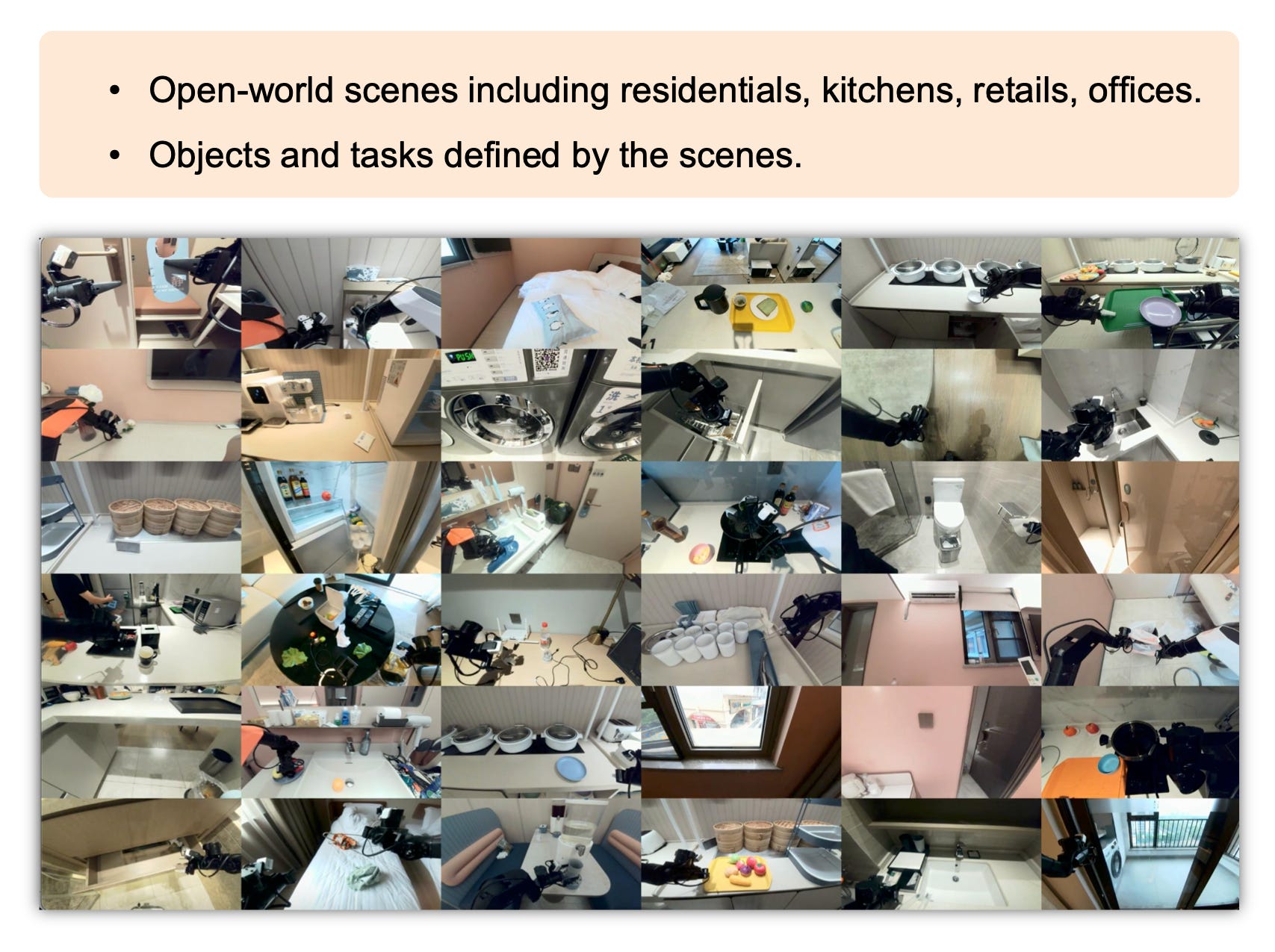 For robotics manipulation, two of the most notable benchmarks are Libero and Calvin. These implement a wide range of tasks with language conditioning (“push the button", “stack the blocks”), which means they can be used to train and evaluate multi-task policies. For mobile robotics tasks, the most notable simulation benchmark is Behavior 1k, which implements a thousand challenging simulated household tasks.