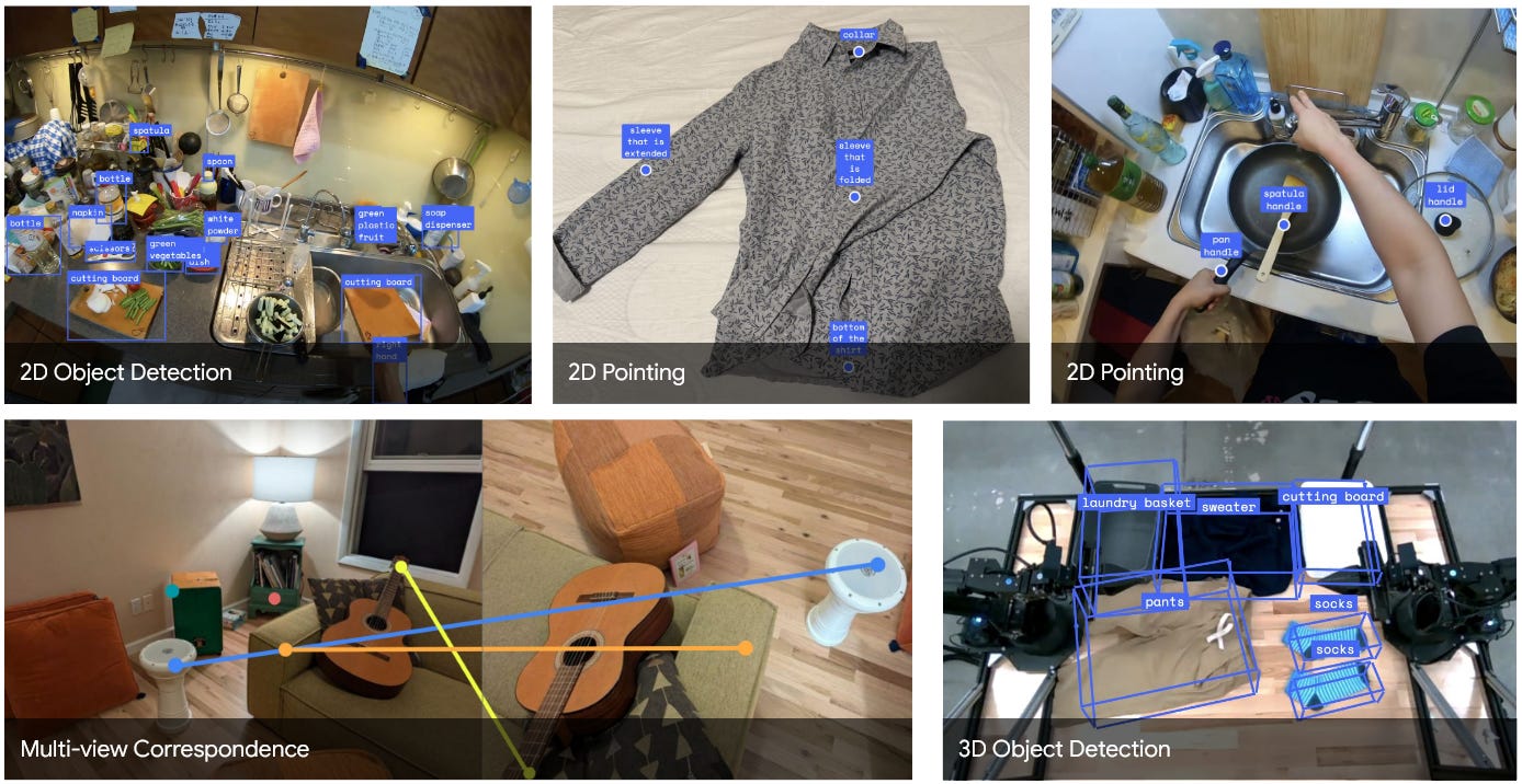 The end effect is that these models can be expected to have a very strong understanding of a wide variety of environments and robotics tasks, in addition to many of the “classic” tasks that flagship large multimodal models are trained on.