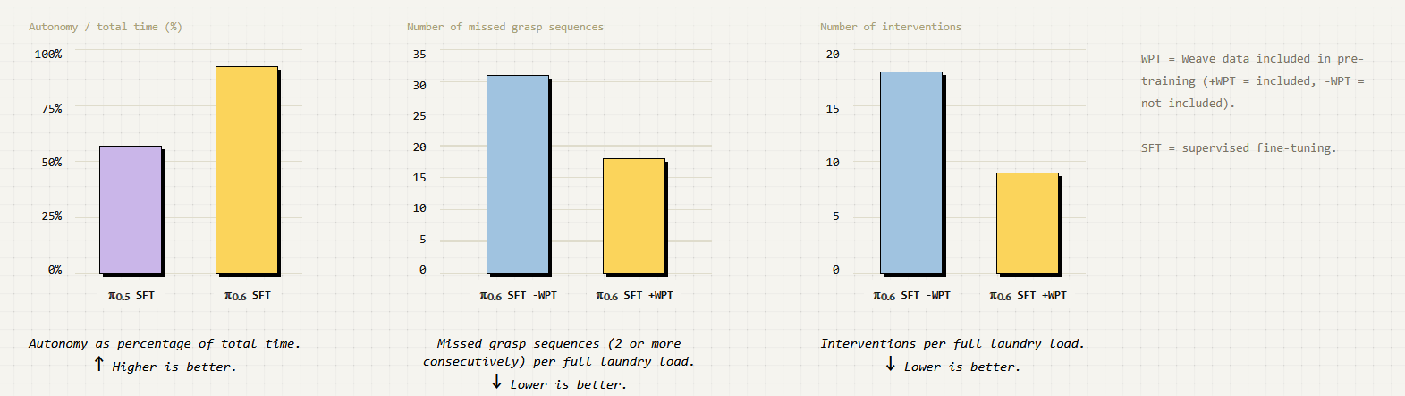 One last question I have is this: if video generation is “just” an auxiliary loss, how long will we need it? In a world with thousands of intelligent robots deployed, will this eventually be distilled away, and will all of these models just be beaten by dedicated robot video models with robot-specific fine tuning? This seems very likely, but is potentially a couple years off.